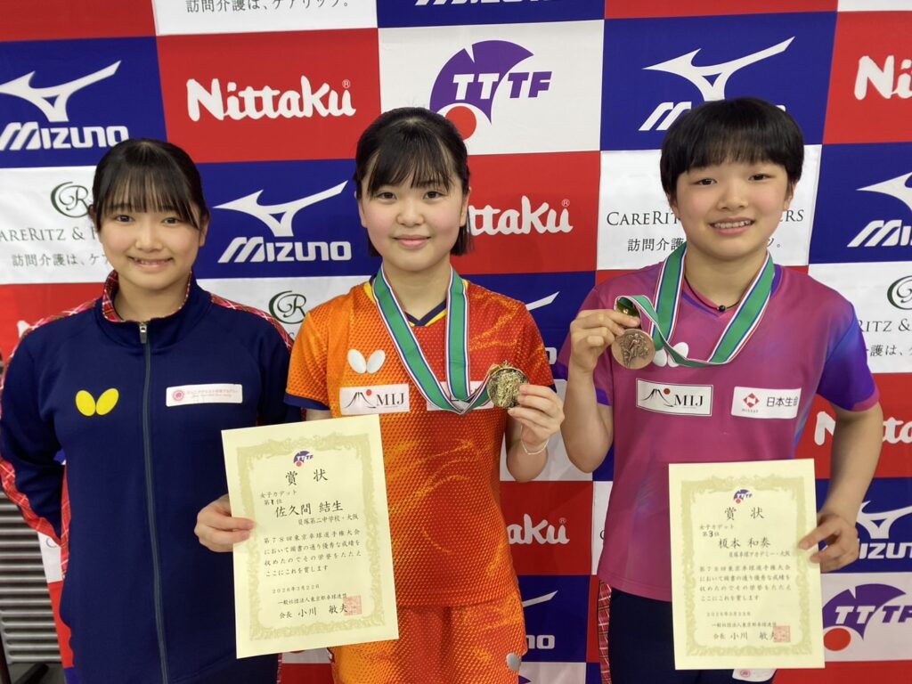 ☆TOKYO OPEN 2026第78回東京卓球選手権大会 カデットの部で佐久間結生選手が優勝!!! 榎本和奏選手が第3位☆